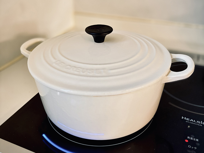 熱伝導と蓄熱性に優れ、食材に「ゆっくりと均一に火を通す」ことができ、煮崩れを防いでくれる鋳物ホーロー製のル・クルーゼのお鍋、受験生のごはん作りに大活躍しています。
